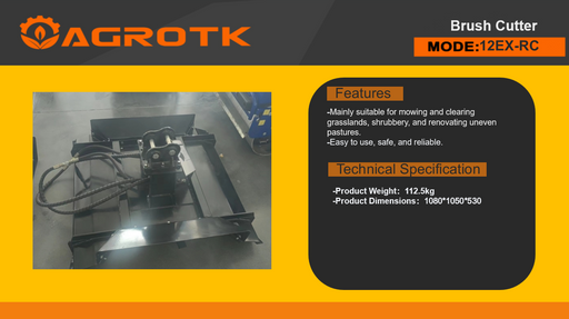 The AGT M-RC brush cutter is a powerful mini skid steer attachment designed for cutting through thick grass, weeds, brush, and small saplings. Buil...
